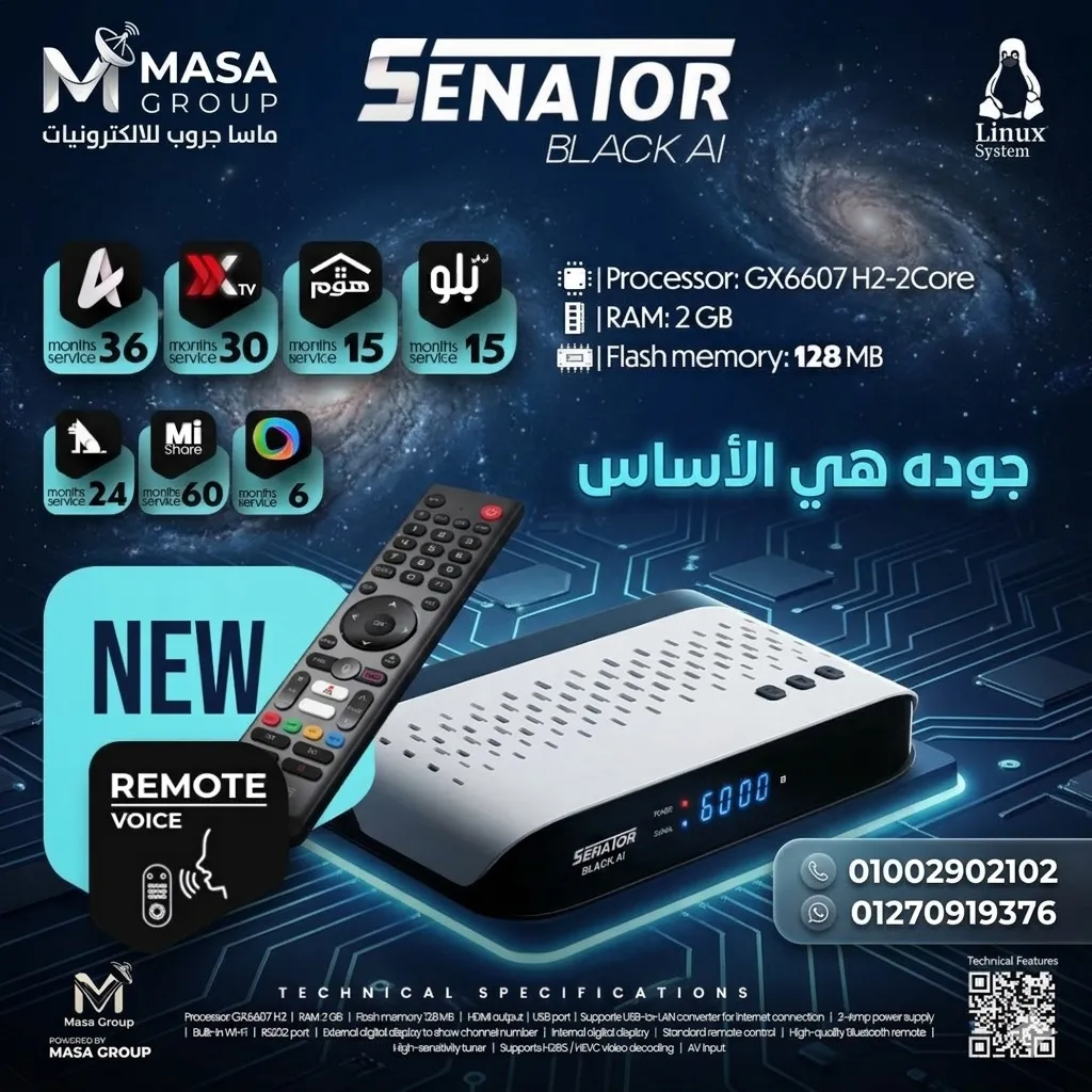 📡 جهاز SENATOR BLACK AI يقدم لك تجربة مشاهدة متطورة وسريعة بفضل النظام الذكي والأداء القوي.